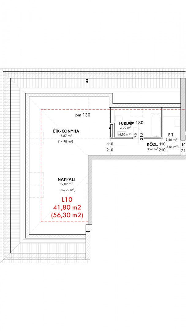 | Lakás L10 | Σ 41,80 m2 (56,30 m2) |