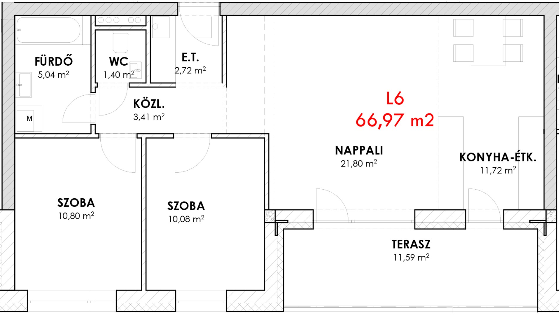 | Lakás L6 | Σ 66,97 m2 + 11,59 m2 terasz |