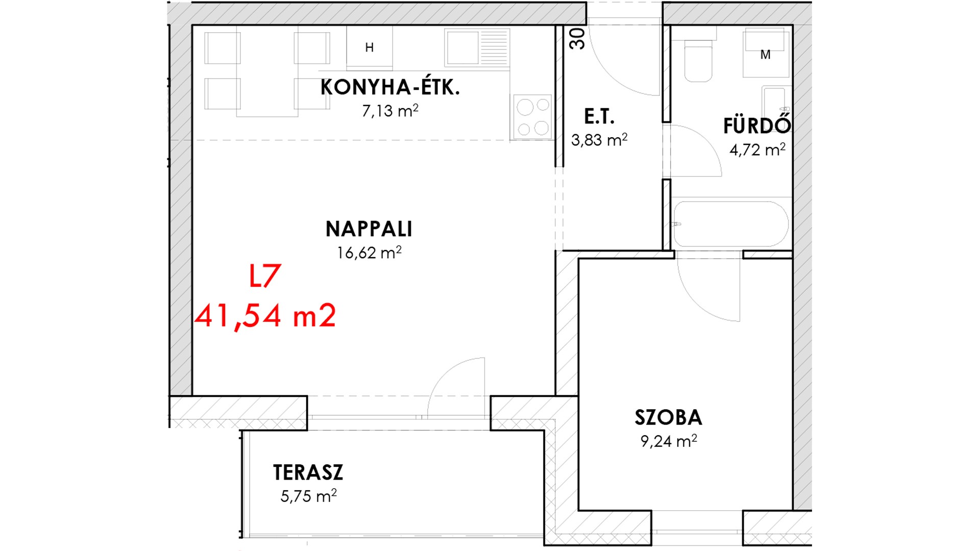 | Lakás L7 | Σ 41,54 m2 + 5,75 m2 terasz |